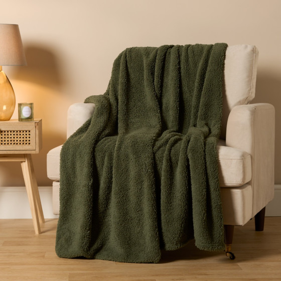 OHS Teddy Fleece Throw, Woodland Green - 150 x 200cm