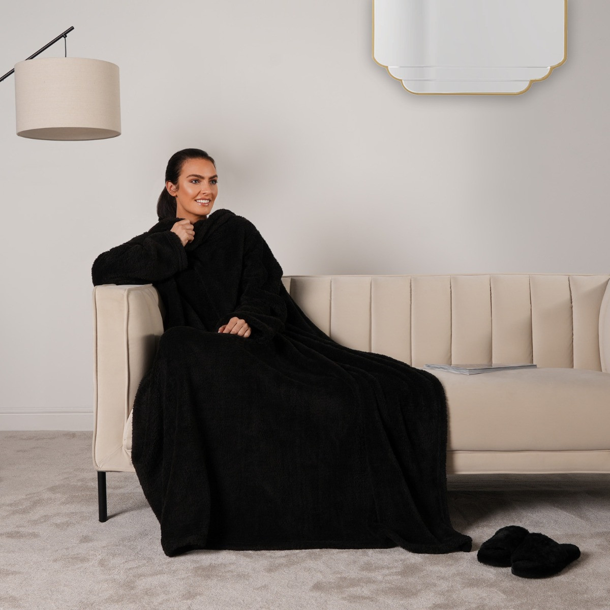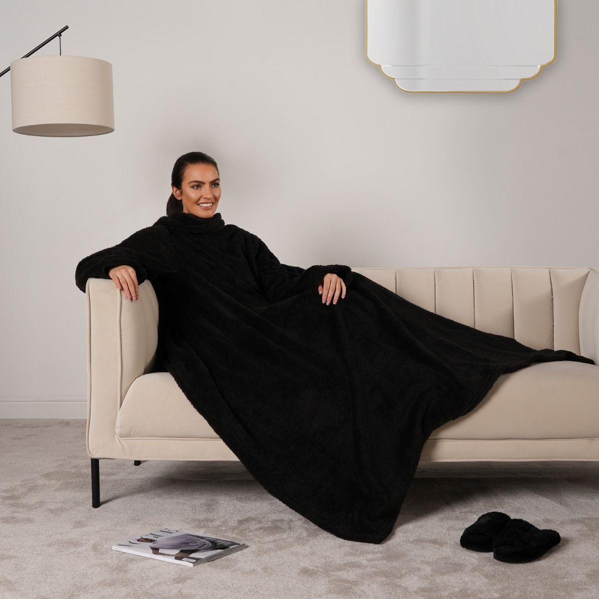 Why don’t you pair your wearable blanket with a plush cuddle bolster cushion for extra support, add an electric blanket for next-level warmth, and block out distractions with blackout curtains for the ultimate snug retreat.
