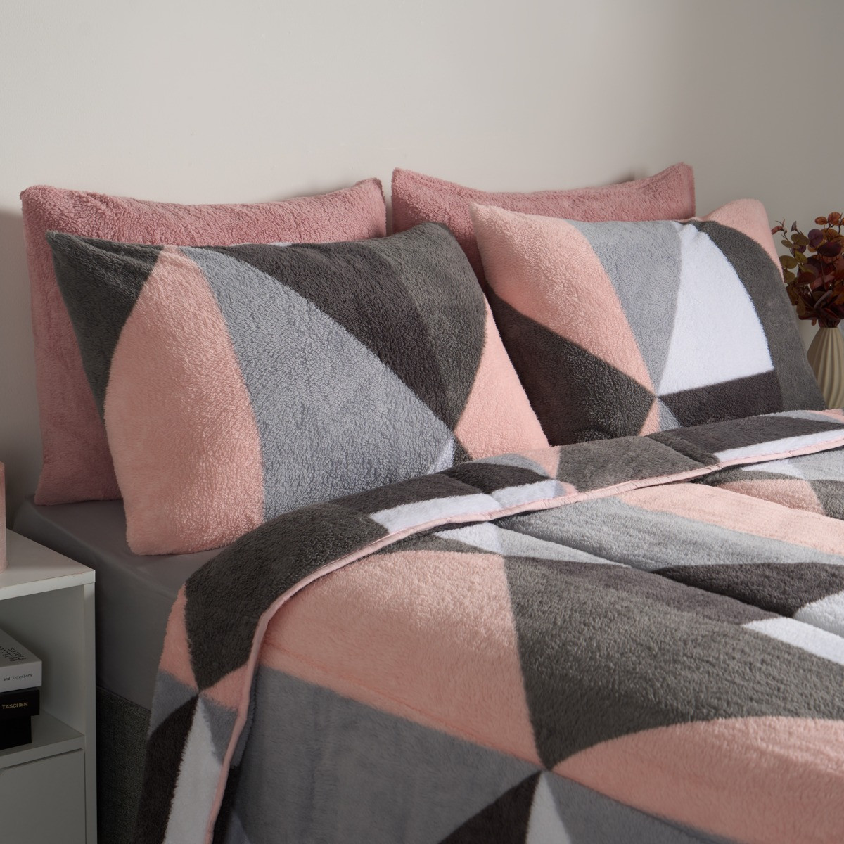 OHS Teddy Geometric Coverless 10.5 Duvet & Pillowcases, Blush - Double