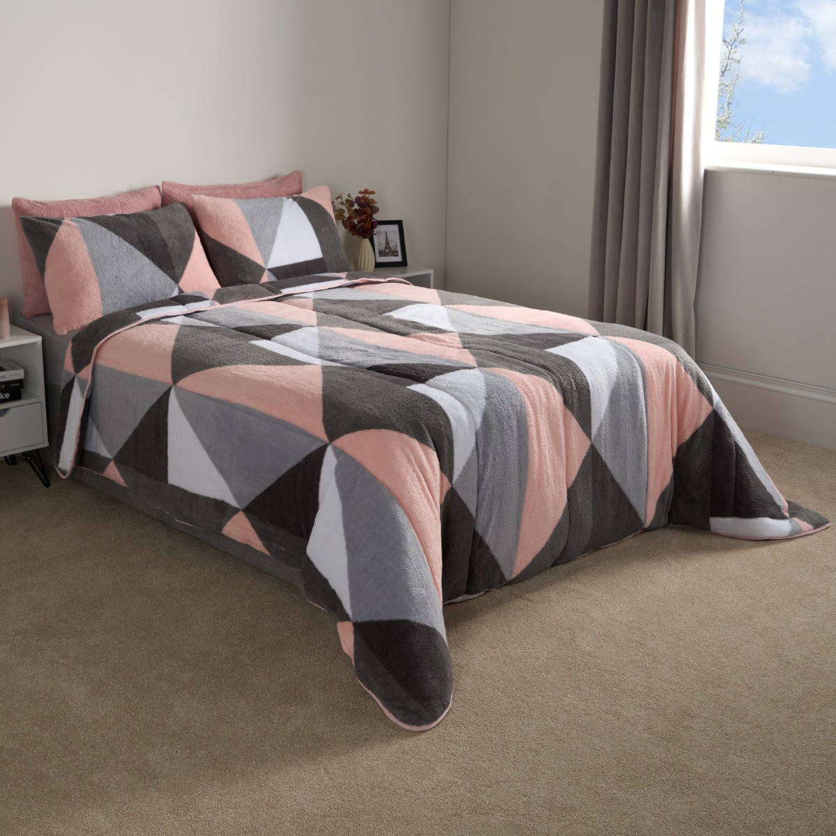 OHS Teddy Geometric Coverless 10.5 Duvet & Pillowcases, Blush - King