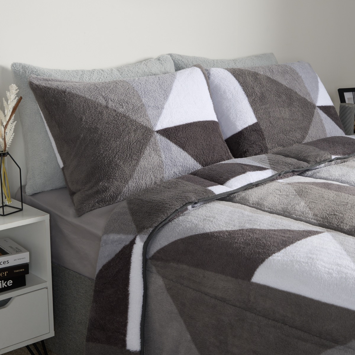 OHS Teddy Geometric Coverless 10.5 Duvet & Pillowcases, Grey - King