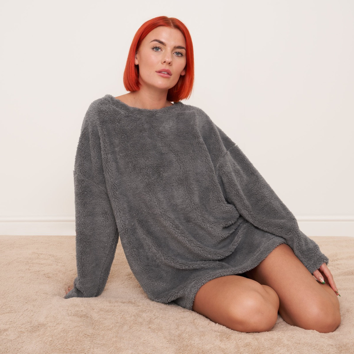 Comfy, stylish and cosy, our teddy fleece long sleeve dress is soft and cosy, making it perfect for lounging around, for use as nightwear, or even for the ultimate working from home look. This item features a scoop neck line and long sleeves.