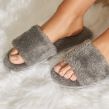 Relax in our teddy fleece slippers which are soft and cosy, making them perfect for lounging around or for the ultimate working from home look. This cosy pair of slider style slipper has a front strap for a snug fit, both sole and strap are a plush teddy material. They have been crafted with a rubber sole for durability and ultimate comfort.