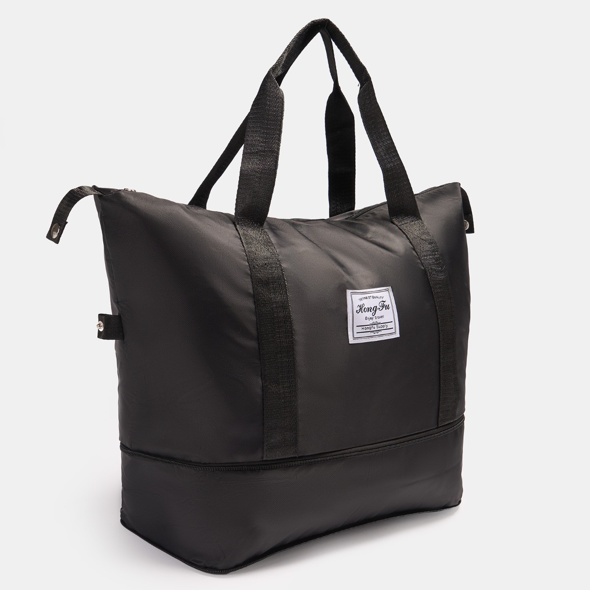 OHS Overnight Weekend Travel Bag is your go-to companion for short trips and overnight stays. Designed with practicality in mind, it features a spacious main compartment to fit your essentials, with sturdy dual handles and an added pocket to fit around your suitcase handles for a hassle-free travel experience. The sleek black design ensures a timeless, versatile look that complements any travel style. Lightweight yet durable, this bag is perfect for weekend getaways, gym visits, or even as a handy carry-on for your travels. Stay organised and travel in style with this functional and sophisticated weekend bag.