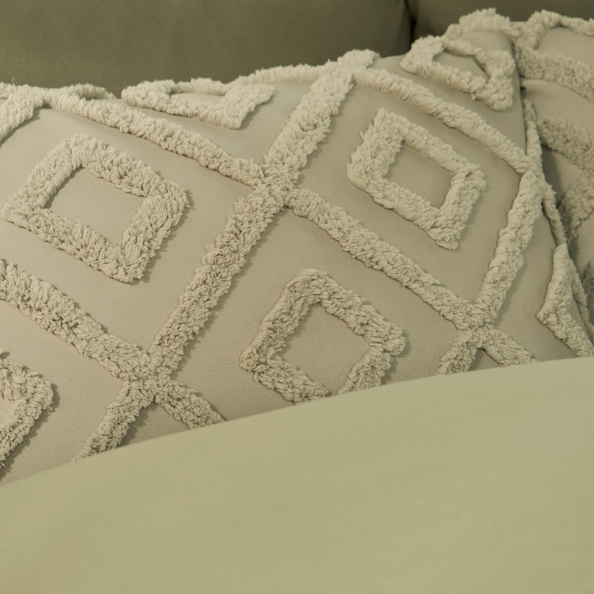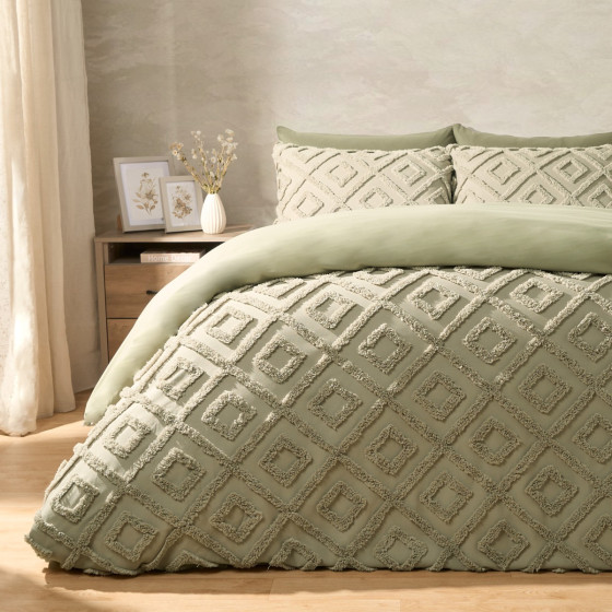 OHS Tufted Geometric Duvet Cover Set, Sage - Single