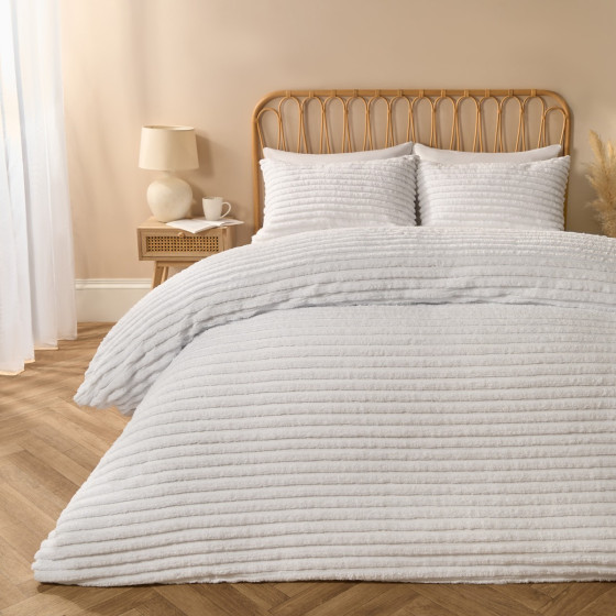 OHS Tufted Stripes Duvet Cover Set, White - Double