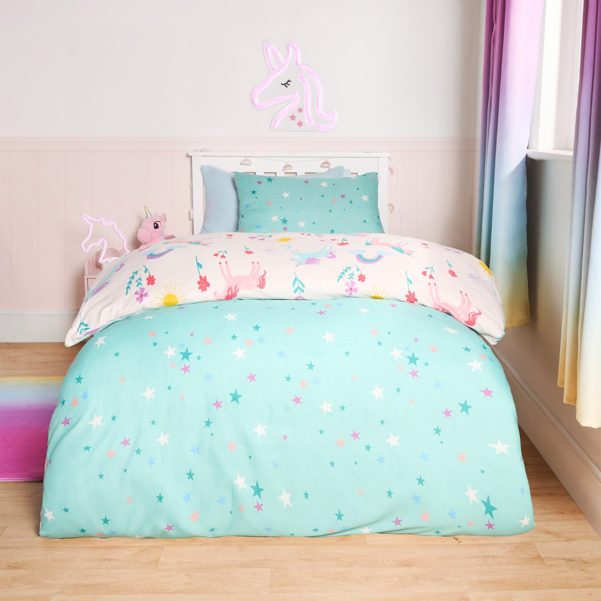 OHS Unicorn Magic Reversible Duvet Cover Set - Pink/Blue