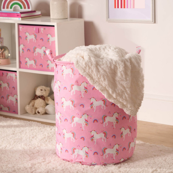 Function meets whimsy in the home with the OHS Unicorn Storage Basket. Featuring a playful unicorn print, this storage basket brings a fun and cute accent to your decor while keeping your space organized. Perfect for holding toys, laundry, clothes, and more, it’s ideal for bedrooms, playrooms, or laundry areas. With sturdy handles and a freestanding design, it’s easy to move from room to room, making storage both functional and fashionable.