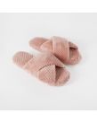 OHS Waffle Fleece Cross Strap Slippers - Blush