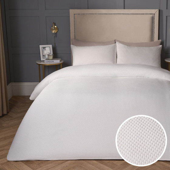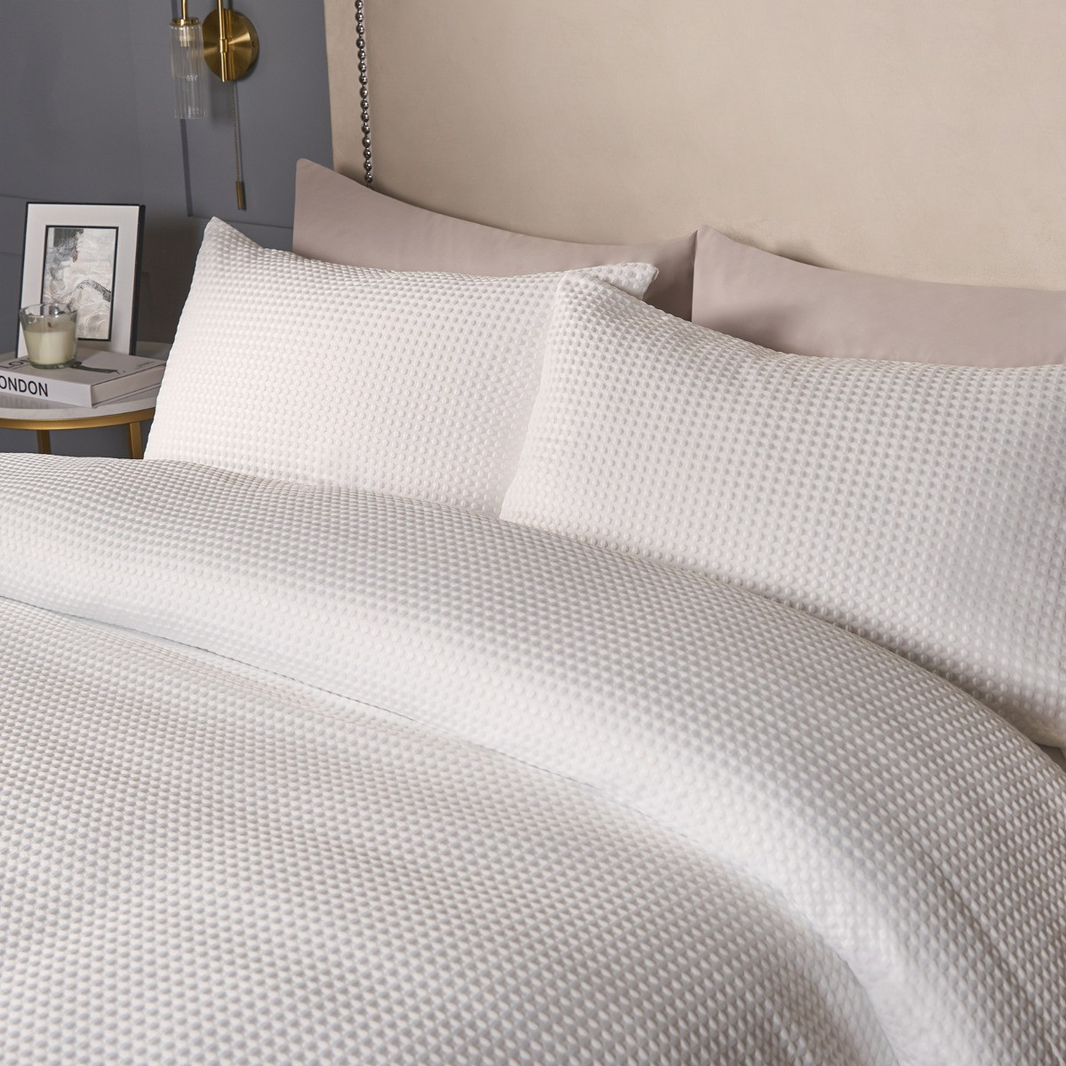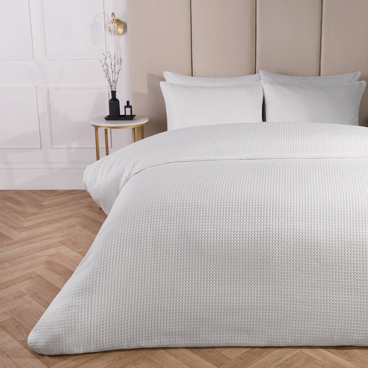 OHS Waffle Textured Luxury Duvet Cover Set - White