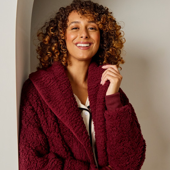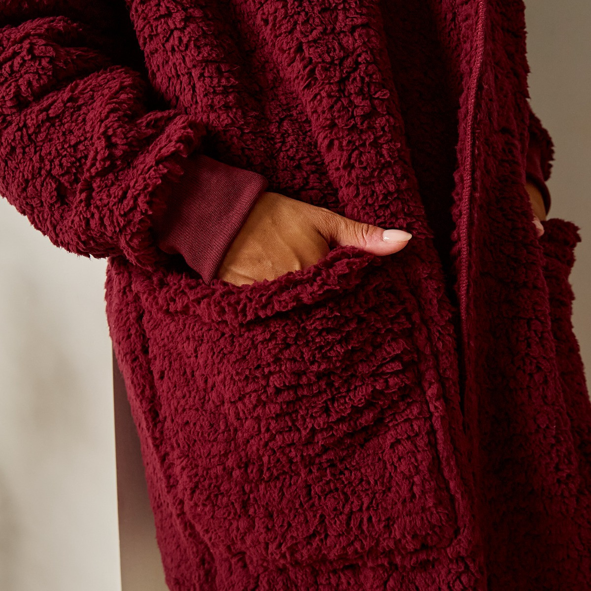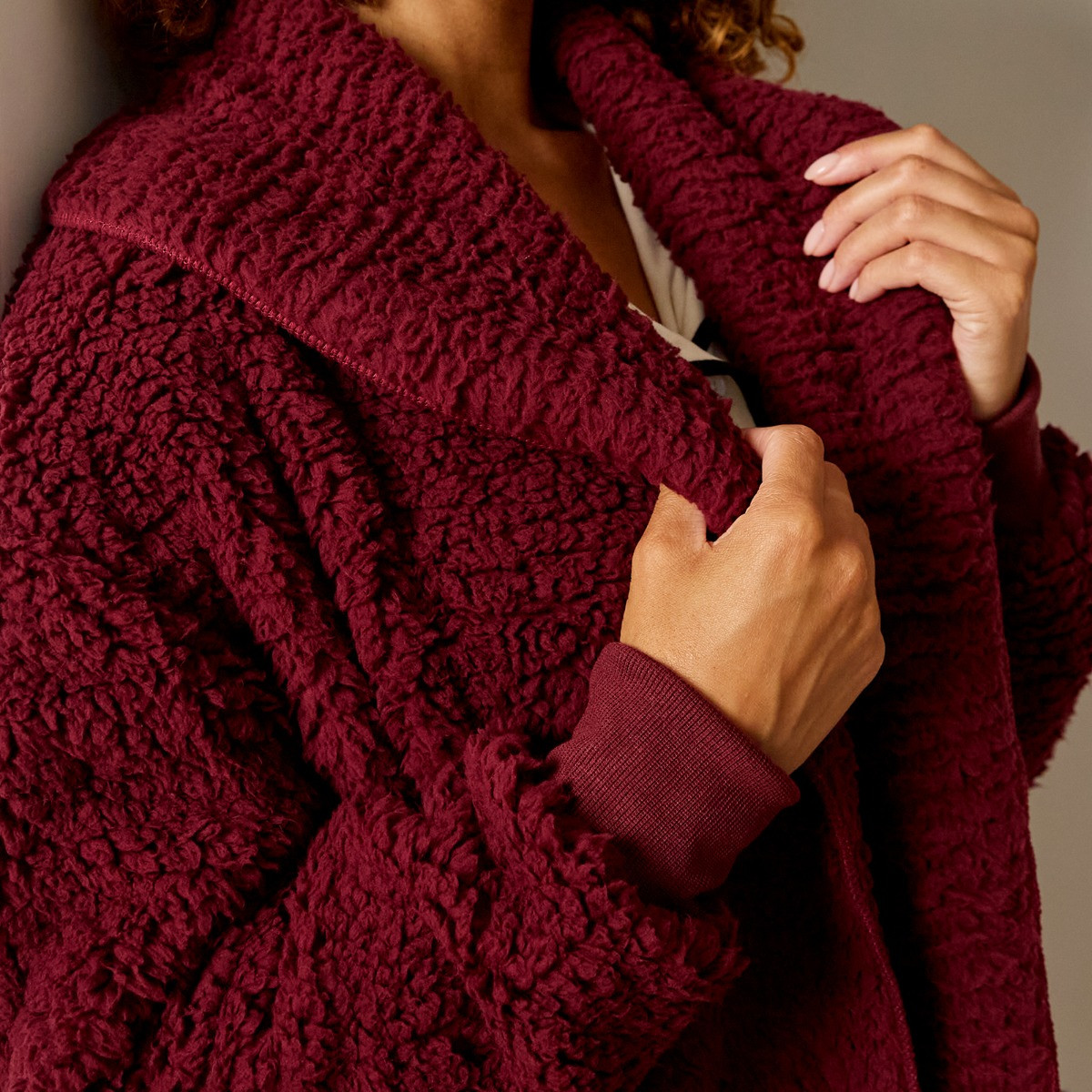 OHS Waterfall Teddy Fleece Cardigan - Burgundy