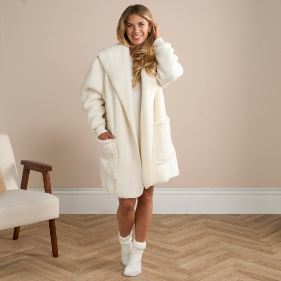 Comfy, stylish, and effortlessly chic, our OHS Waterfall Teddy Fleece Cardigan in Grey is your go-to piece for cosy relaxation. Crafted from ultra-soft teddy fleece, this cardigan is designed for maximum comfort, making it perfect for lounging at home, as nightwear, or for a relaxed work-from-home look. The elegant waterfall design drapes beautifully, and the open front adds a touch of sophistication to your outfit. With its long sleeves and plush texture, this cardigan is an ideal layering piece for cooler days.