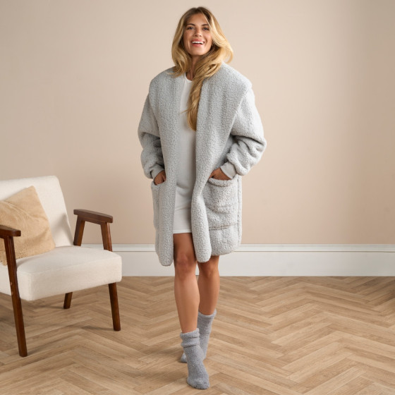 Comfy, stylish, and effortlessly chic, our OHS Waterfall Teddy Fleece Cardigan in Grey is your go-to piece for cosy relaxation. Crafted from ultra-soft teddy fleece, this cardigan is designed for maximum comfort, making it perfect for lounging at home, as nightwear, or for a relaxed work-from-home look. The elegant waterfall design drapes beautifully, and the open front adds a touch of sophistication to your outfit. With its long sleeves and plush texture, this cardigan is an ideal layering piece for cooler days.