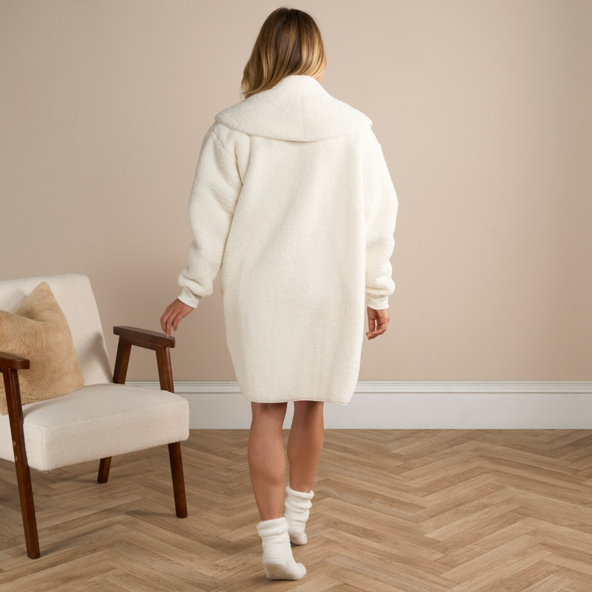 Comfy, stylish, and effortlessly chic, our OHS Waterfall Teddy Fleece Cardigan in Cream is your go-to piece for cozy relaxation. Crafted from ultra-soft teddy fleece, this cardigan is designed for maximum comfort, making it perfect for lounging at home, as nightwear, or for a relaxed work-from-home look. The elegant waterfall design drapes beautifully, and the open front adds a touch of sophistication to your outfit. With its long sleeves and plush texture, this cardigan is an ideal layering piece for cooler days.