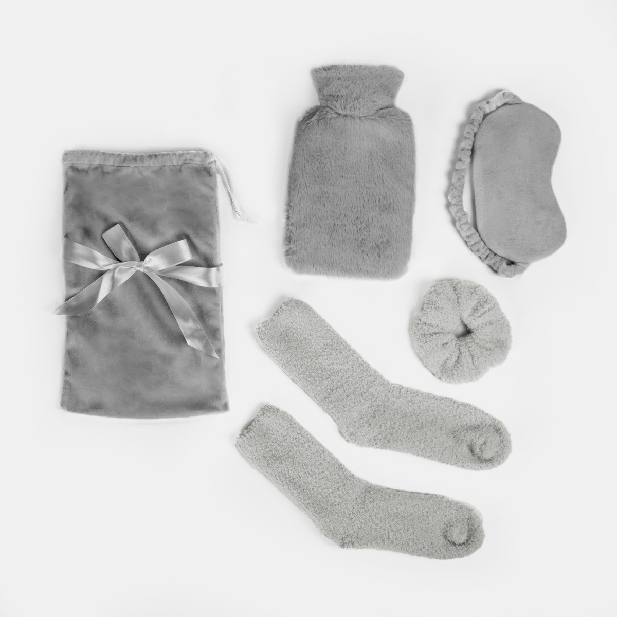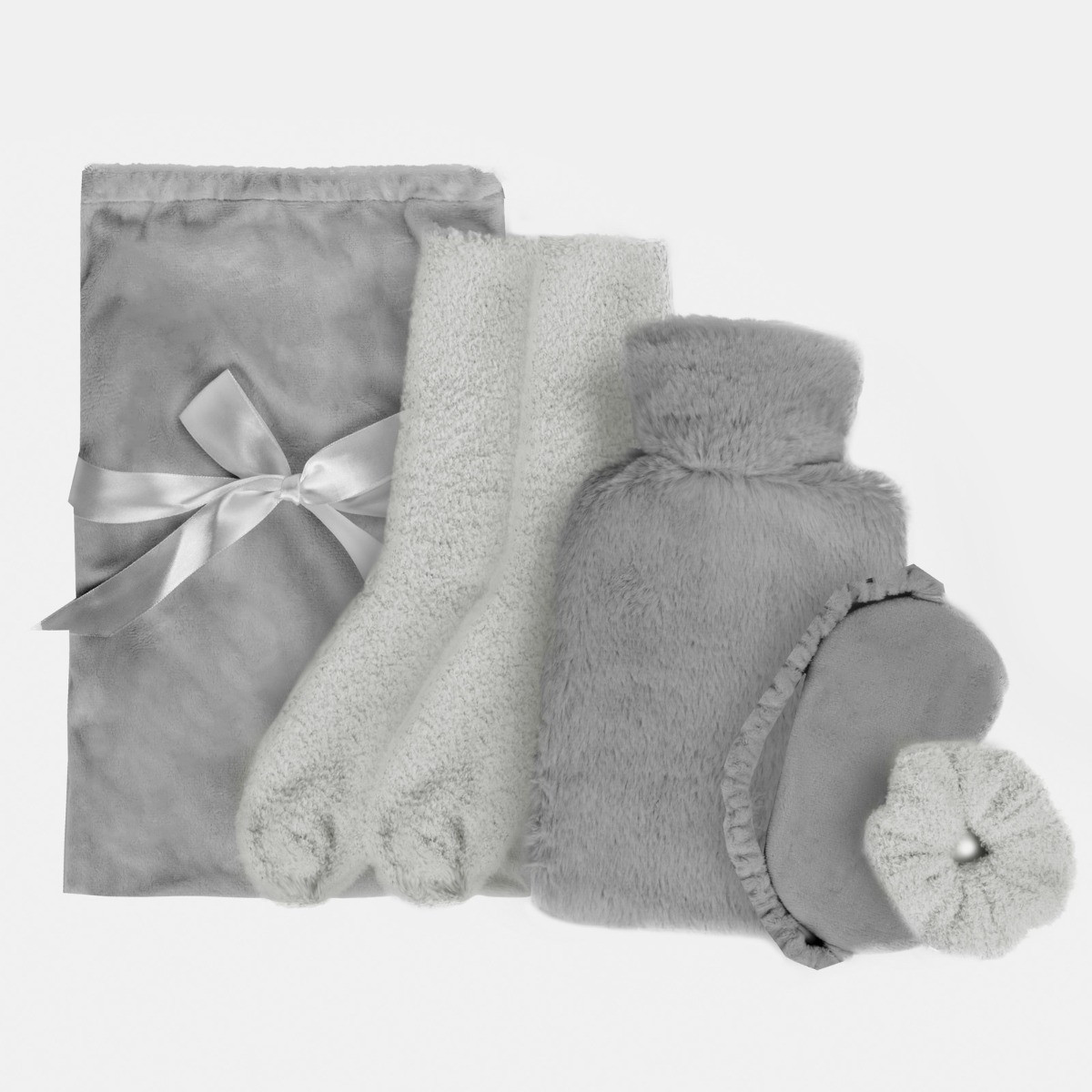 OHS Winter Warmer Cosy Hot Water Bottle Gift Set, Grey - 5PC