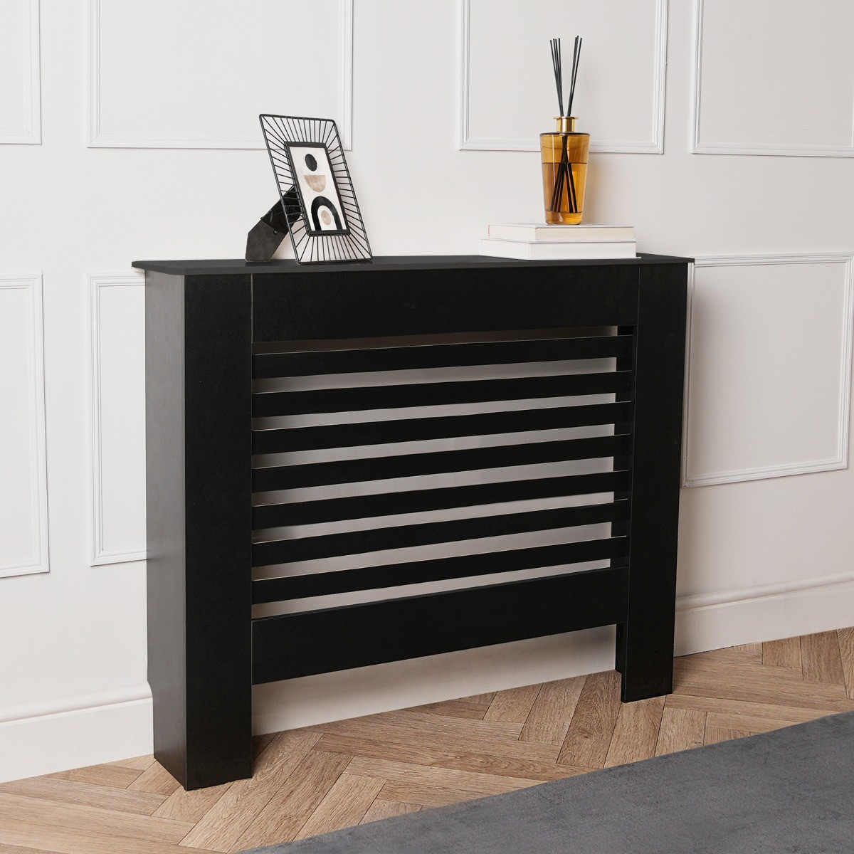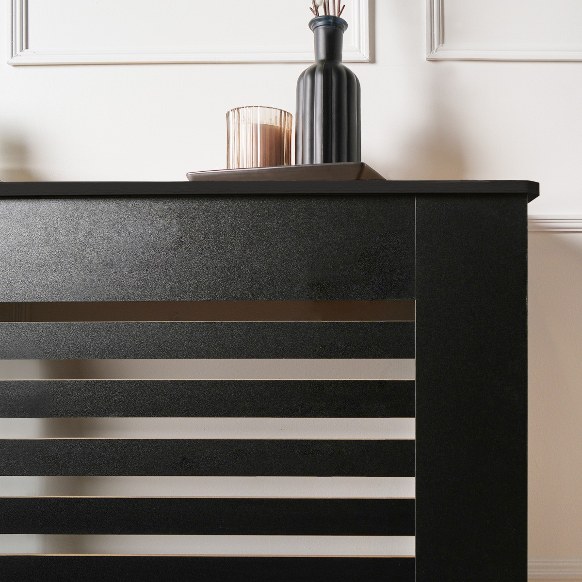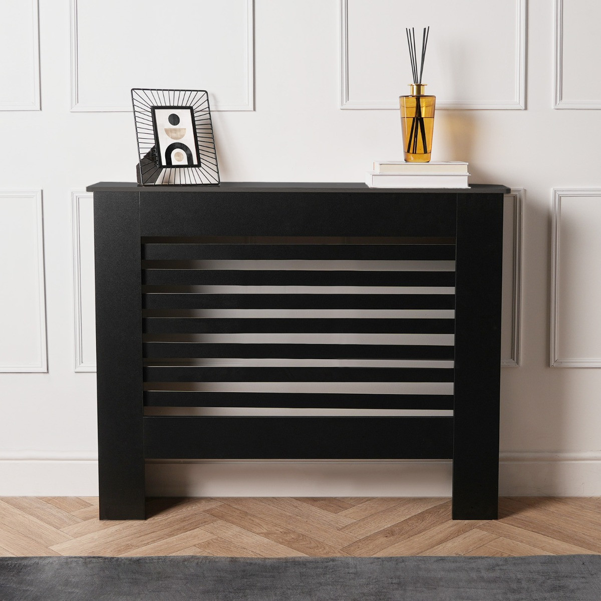 OHS Wooden Slats Radiator Cover, Black - Medium