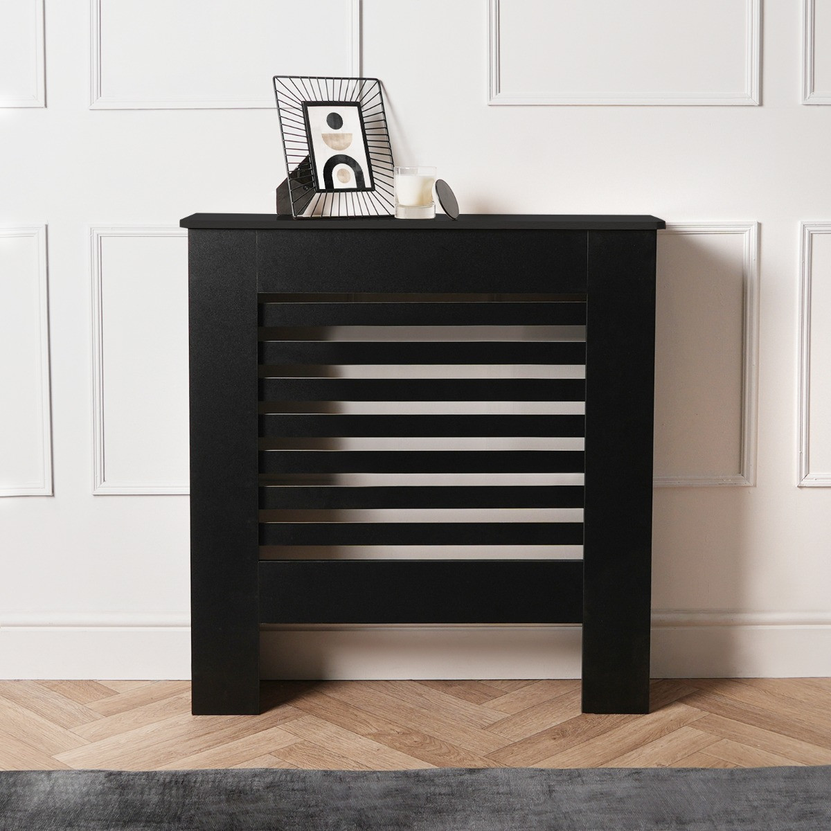 The OHS Wooden Slats Radiator Cover is a stylish and practical solution to enhance your home's interior while maximising space and safety. Featuring a sleek finish and clean lines, this radiator cover seamlessly blends with any decor style, from modern to traditional. The slanted front makes for a minimalist design that adds a touch of sophistication to your rooms while allowing for optimal heat flow, ensuring your space stays warm. Perfect for living rooms, bedrooms, and hallways, this versatile piece also offers extra surface space for décor items or storage.