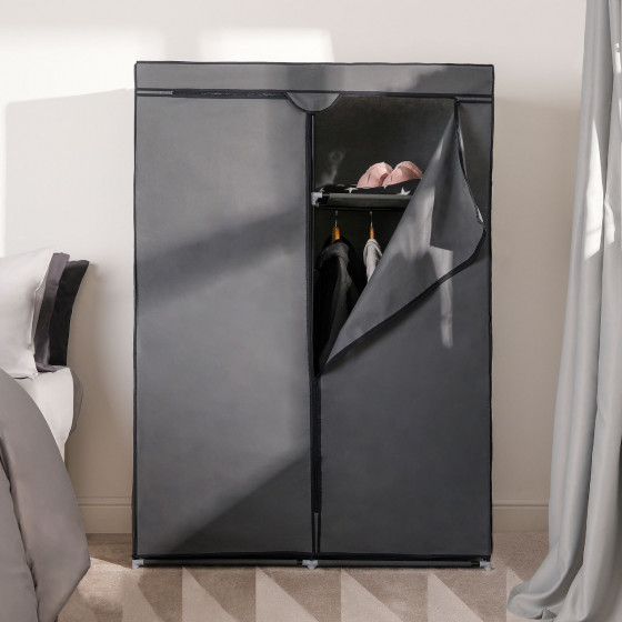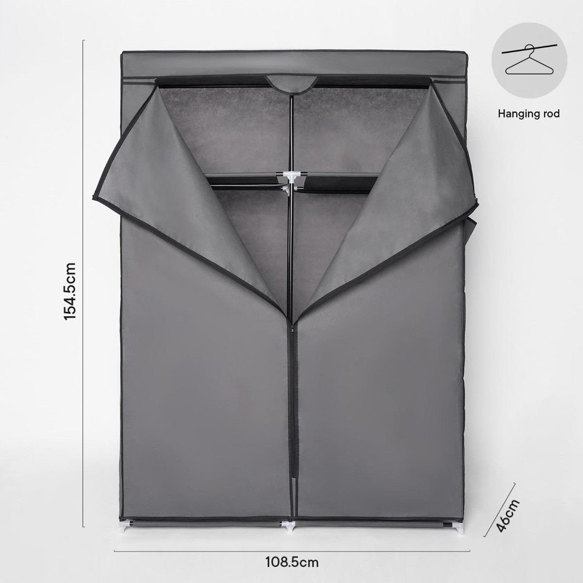 OHS Boston Zip Closure Fabric Double Wardrobe - Charcoal