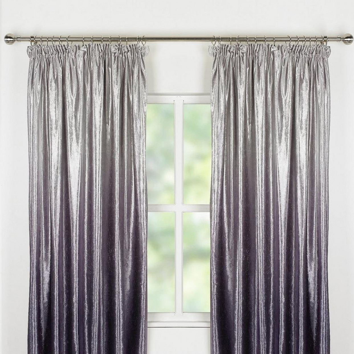 Ombre Velvet Curtains Pencil Pleat, Plum Purple Silver - 66" x 72"