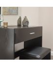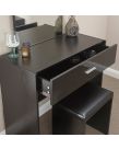As popular as ever, the Ottawa range is expanded with this new dresser and stool set, with a sleek modern design that makes a design statement in any bedroom. The dresser has a simple, console-style construction with an unframed mirror to the back, and incorporating a full-width drawer that's ideal for make-up, toiletries and hair care equipment. The upholstered seat slips neatly beneath when not in use. Available in oak and walnut woodgrain-effect foil finish with contrasting drawer fronts, as well as in black and white.