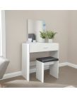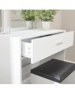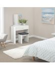 As popular as ever, the Ottawa range is expanded with this new dresser and stool set, with a sleek modern design that makes a design statement in any bedroom. The dresser has a simple, console-style construction with an unframed mirror to the back, and incorporating a full-width drawer that's ideal for make-up, toiletries and hair care equipment. The upholstered seat slips neatly beneath when not in use. Available in oak and walnut woodgrain-effect foil finish with contrasting drawer fronts, as well as in black and white.