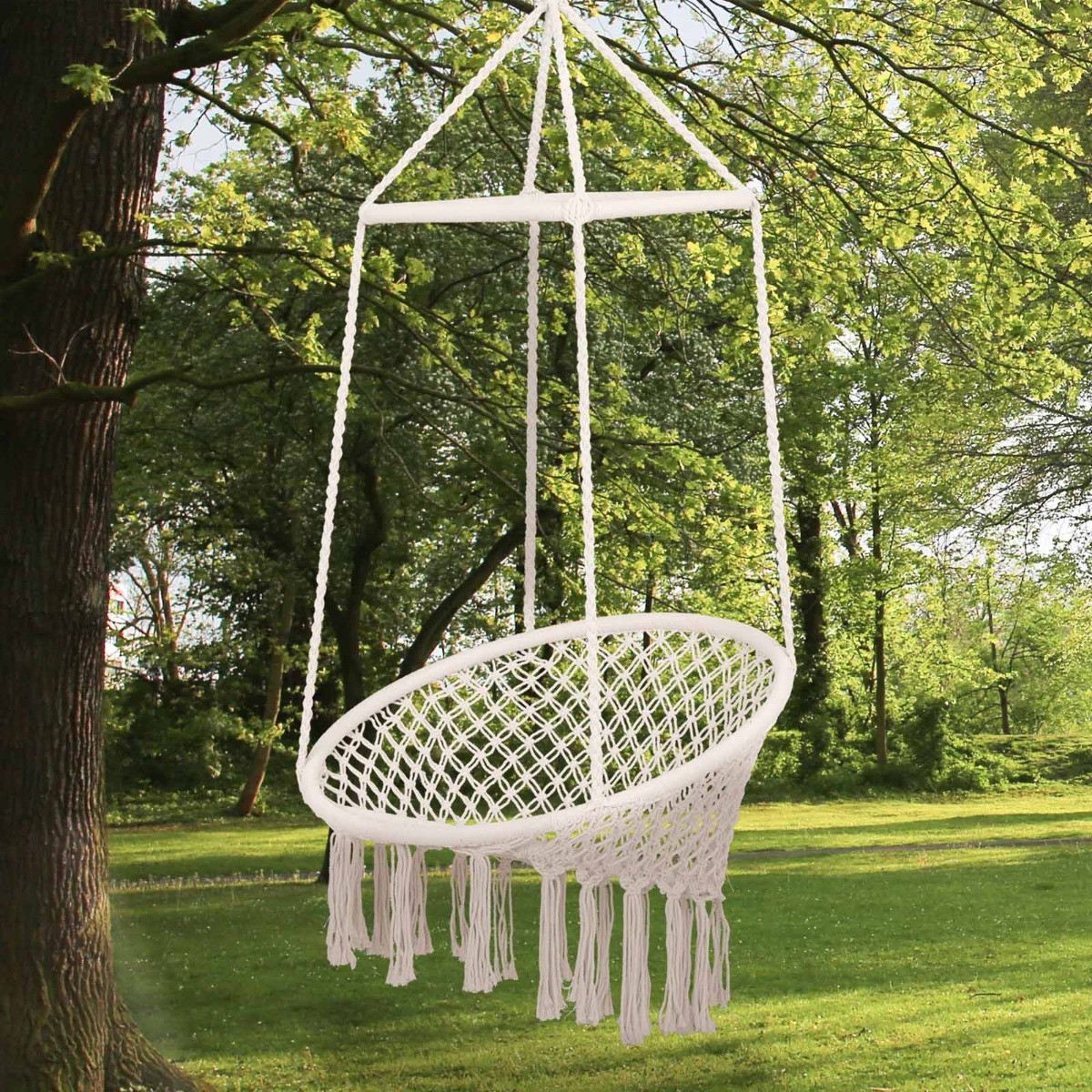 Make the most of your lazy days with this hanging rope chair from Outsunny. Made from high quality cotton in a soft beige hue, our garden hammock chair is crafted into an elegant Bohemian knitted design with tassels on the end for a beautiful finishing touch. Superbly strong and durable, the hanging seat is able to solidly hold up to 100kg, giving you complete peace of mind when sitting on it. Our hanging chair is easy to install – simply hang and go, giving you more time to relax the day away.