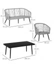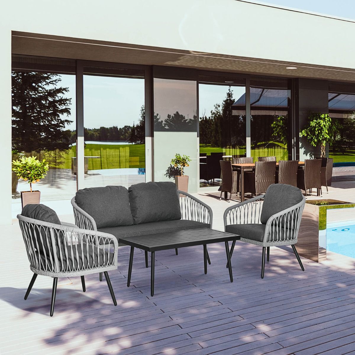 Outsunny Patio Sofa Set With Loveseat, Grey - 5 Seater