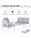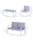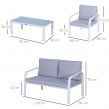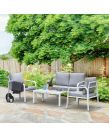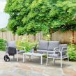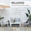 Let friends and family gather round in simple yet sleek style outdoors, thanks to this four-piece dining set from Outsunny. Fusing smooth curved lines in a bright white and grey colour scheme, it creates a contemporary look which will instantly liven up your garden and outdoor areas. The set consists of four pieces – two armchairs, a two-seater sofa and a dining table, with aluminium forming the frames for a tough and durable structure for longevity, with thick padded cushions on the seats and backs for enduring comfort as you relax. A tempered glass on the long table adds a beautiful finish, with protective pads on each foot for balance. Outdoor entertaining has never looked so beautiful.