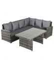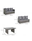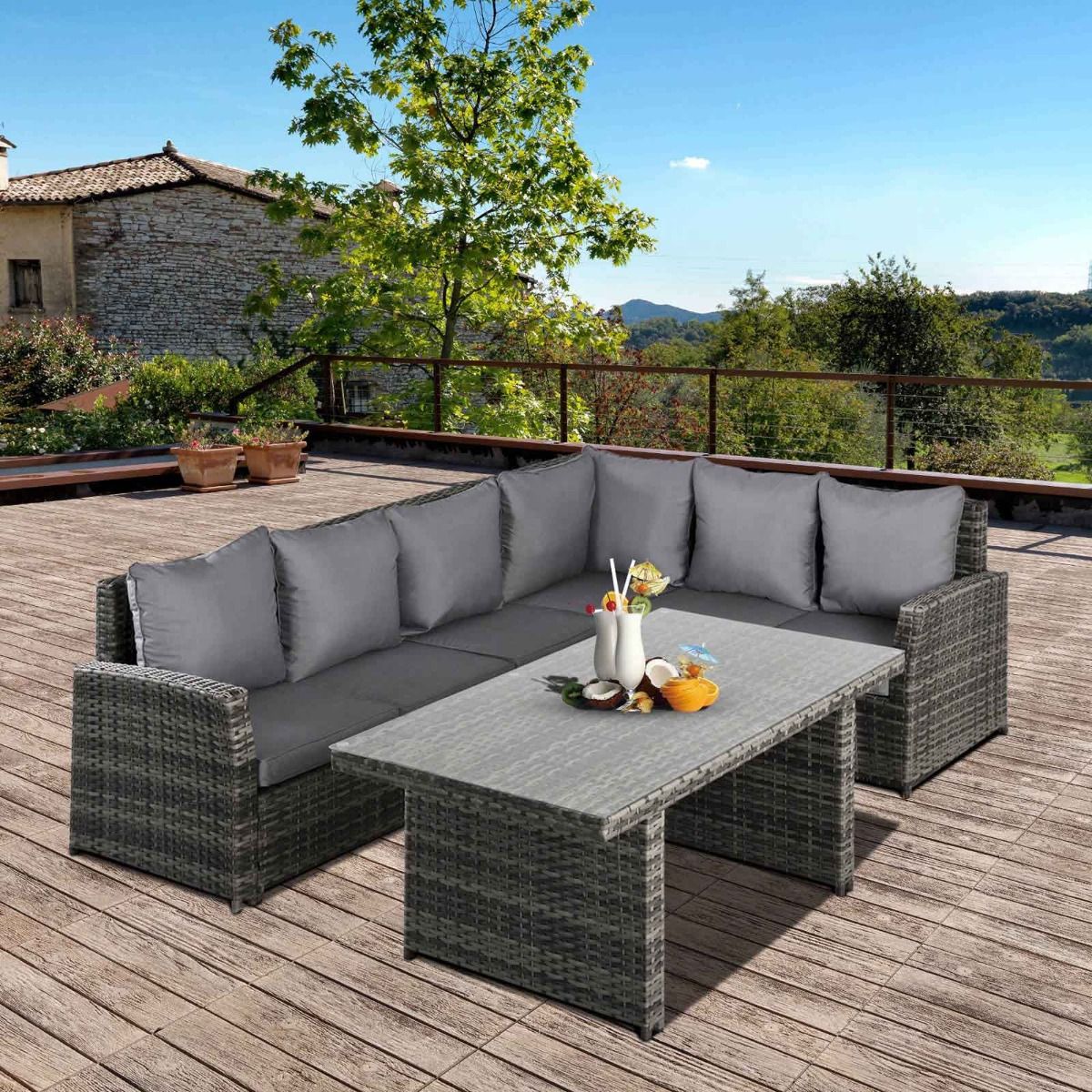 Outsunny Rattan Corner Sofa Dining Set With Tempered Glass Table, Grey - 5 Seater