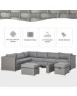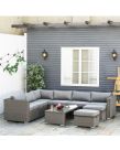 Outsunny Rattan Corner Sofa Set With Table & Footstools, Grey - 8 Seater