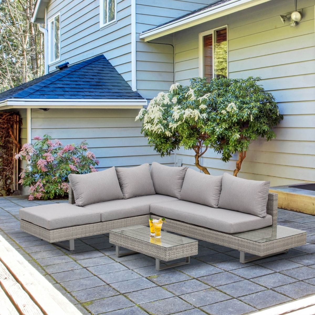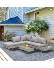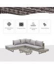 Outsunny Rattan Wicker Corner Sofa Set, Light Grey - 5 Seater