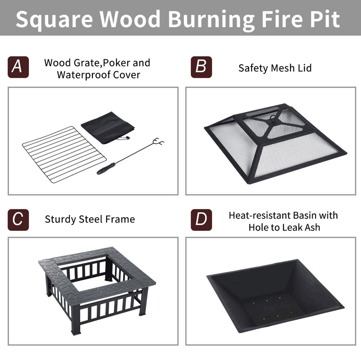 - Safety and waterproof mesh cover encloses the fire for safety as well as preventing debris or sparks flying