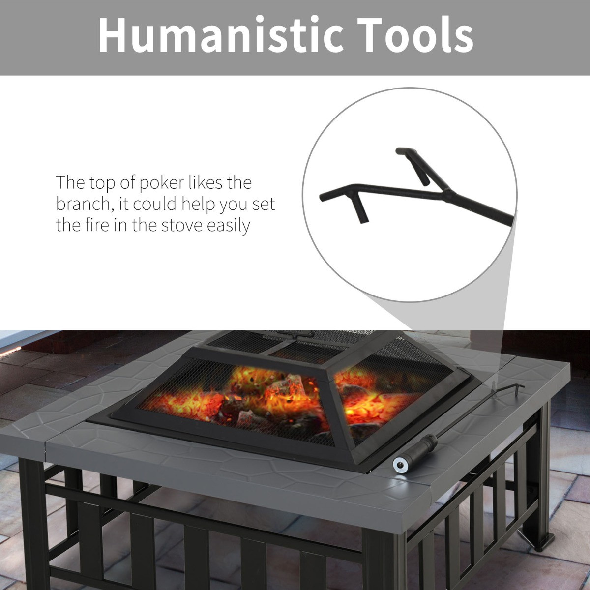 The firepit from Outsunny is constructed from Metal frame offering greater durability and stability. Designed with a surround using slate tiles the enable a top style use making it an ideal addition to your garden, backyard, camping, patio giving you a functional and attractive outdoor heating. The surface of the firepit is treated so it does not cause any damage due to high temperatures. Create the ideal environment for outdoor gatherings with this firepit.