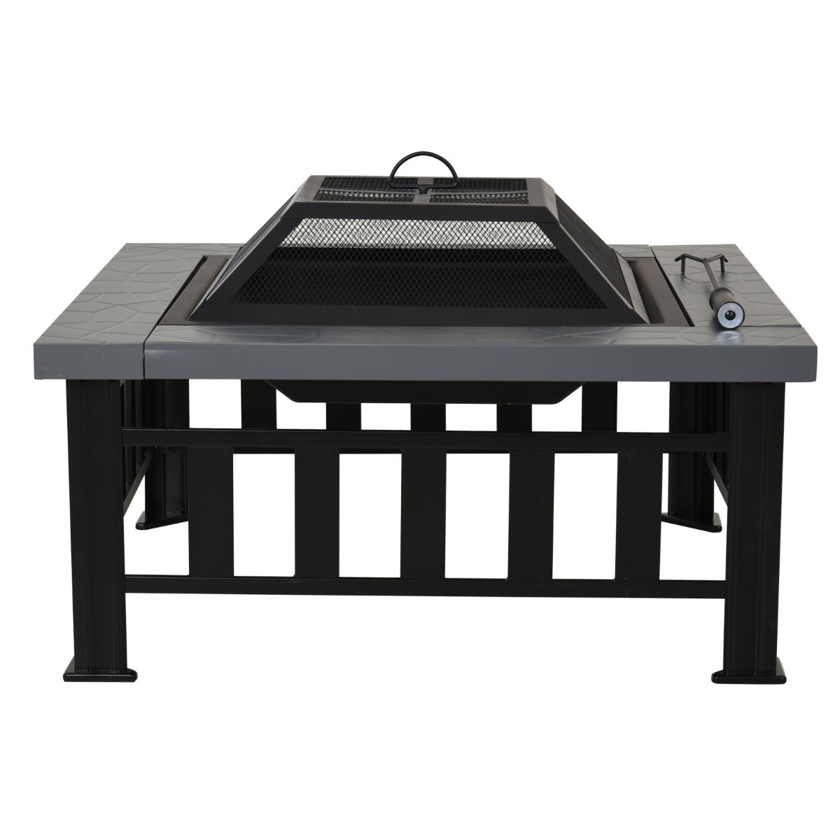 Outsunny Square Metal Fire Pit With Cover - Black/Grey