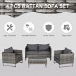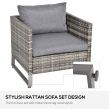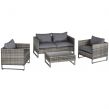 Outsunny Wicker Rattan Dining Lounge Set, Grey - 4 Seater