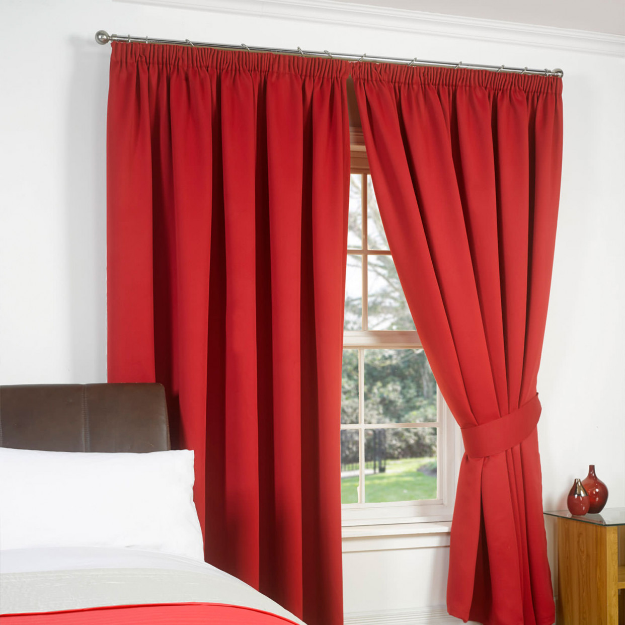 Pencil Pleat Thermal Blackout Curtains - Red 66x72