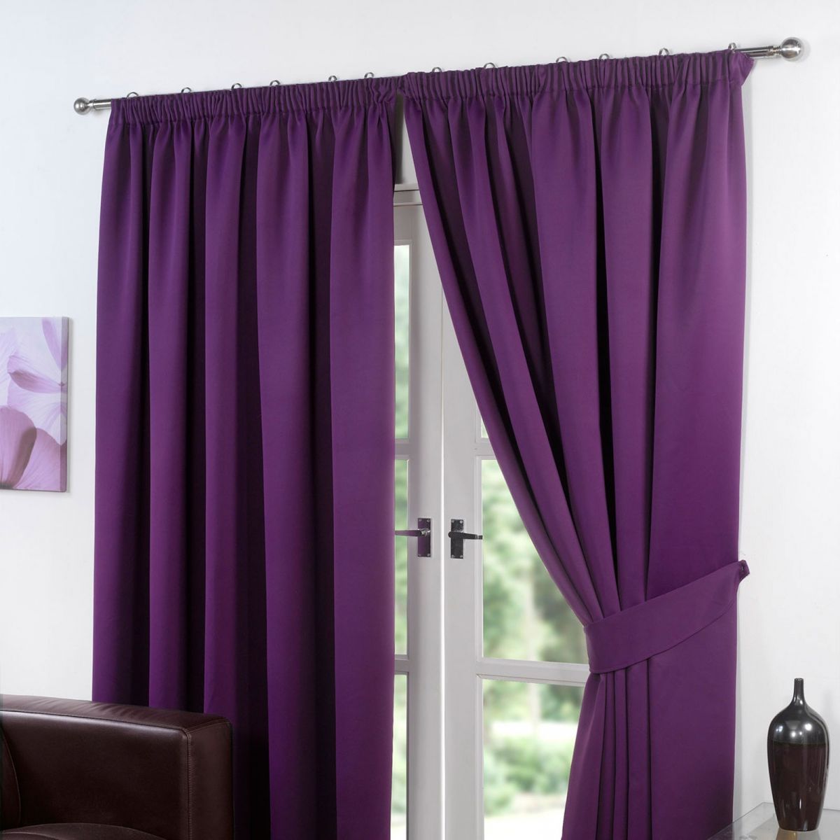 Pencil Pleat Thermal Blackout Fully Lined Curtains - Plum 46x72