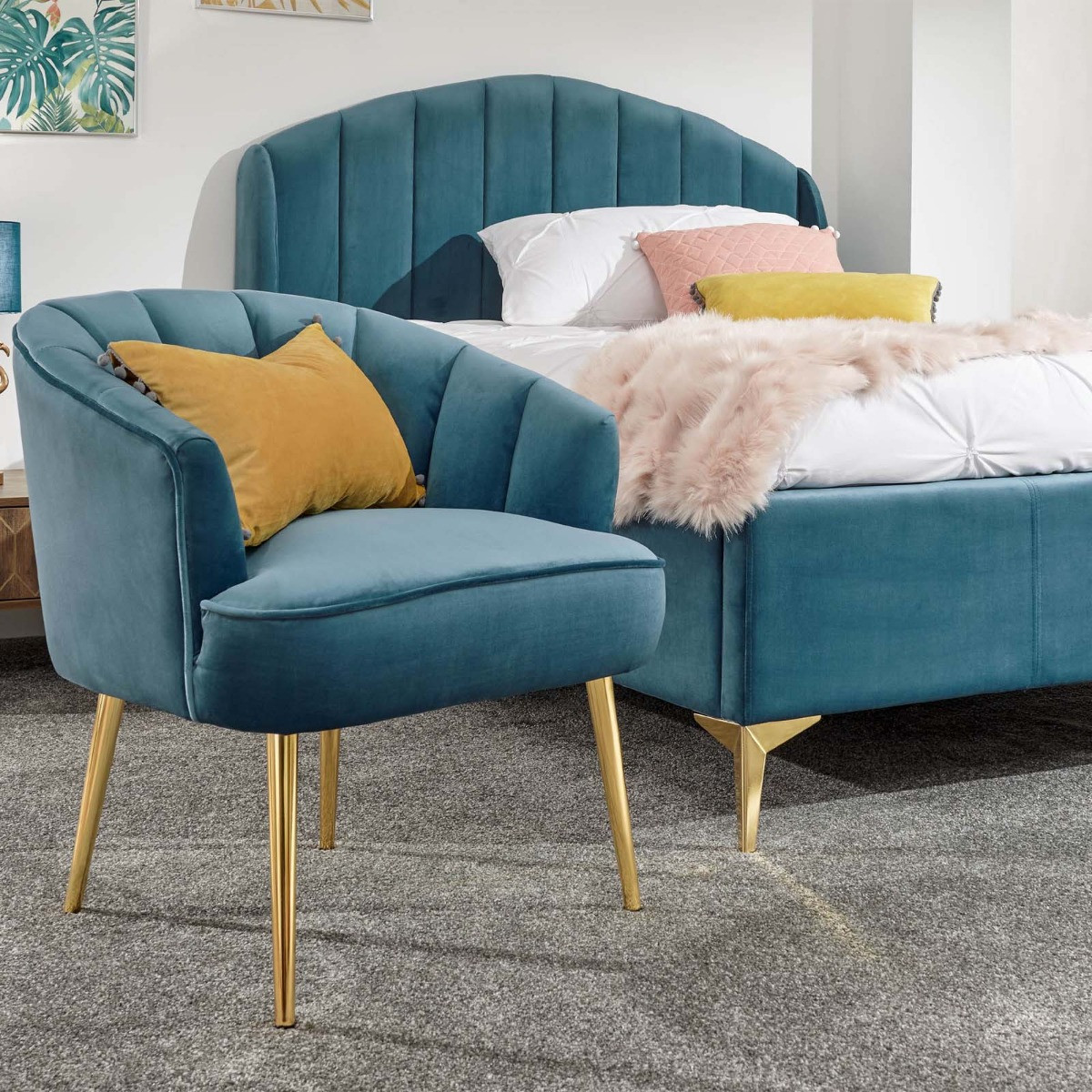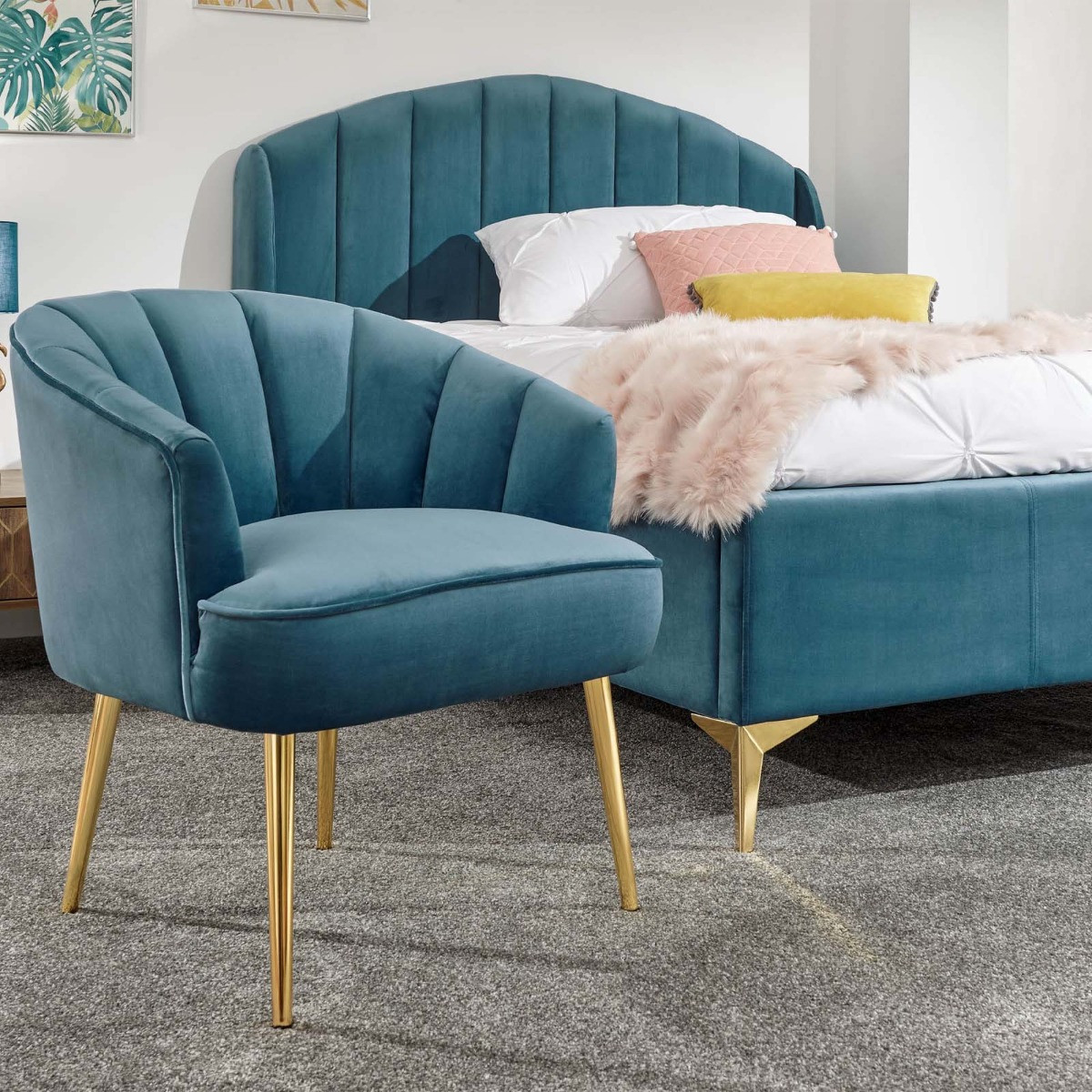 Treat yourself to the ultimate indulgent bedroom accessory – a pretty occasional boudoir chair. Inspired by the timeless scallop shell form, Pettine combines a deeply padded frame and seat with a gorgeous soft-touch plush fabric to create an irresistible furnishing piece that brings Hollywood glamour to any room. The tapered gold-effect metal legs provide a shimmering contrast to the classic lines of the frame. Choose from blush pink or soft grey colourways – the matt velvet pile co-ordinates beautifully with contemporary decorative palettes. Padded plush-upholstered chair Sumptuous foam seat and back Soft scalloped design Assembled Size: 74 x 67.5 x 64