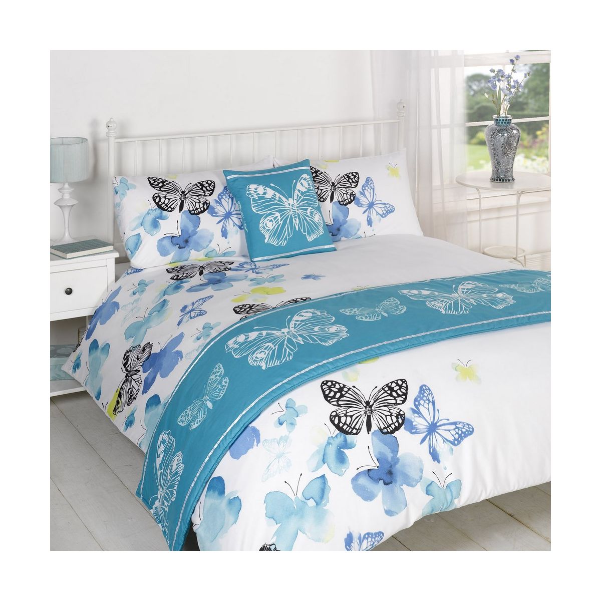 Double Bed Includes: 1 x Duvet Cover, 2 x Pillow Case, 1 x Cushion Cover, 1 x Bed Runner - Fits W200cm x L200cm
