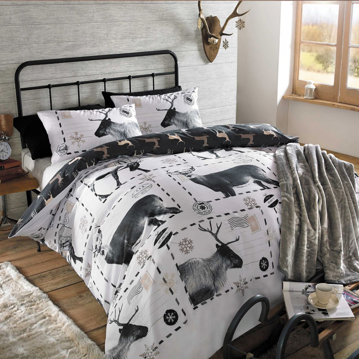This reindeer postcard duvet cover set will transform your bedroom decor by adding a festive spirit. The reversible stag bedding has a stylish design and photographic scheme and comes with matching pillowcases. This duvet set is made from polycotton making it soft, comfortable and durable. Will make an ideal gift for adult and kids alike.