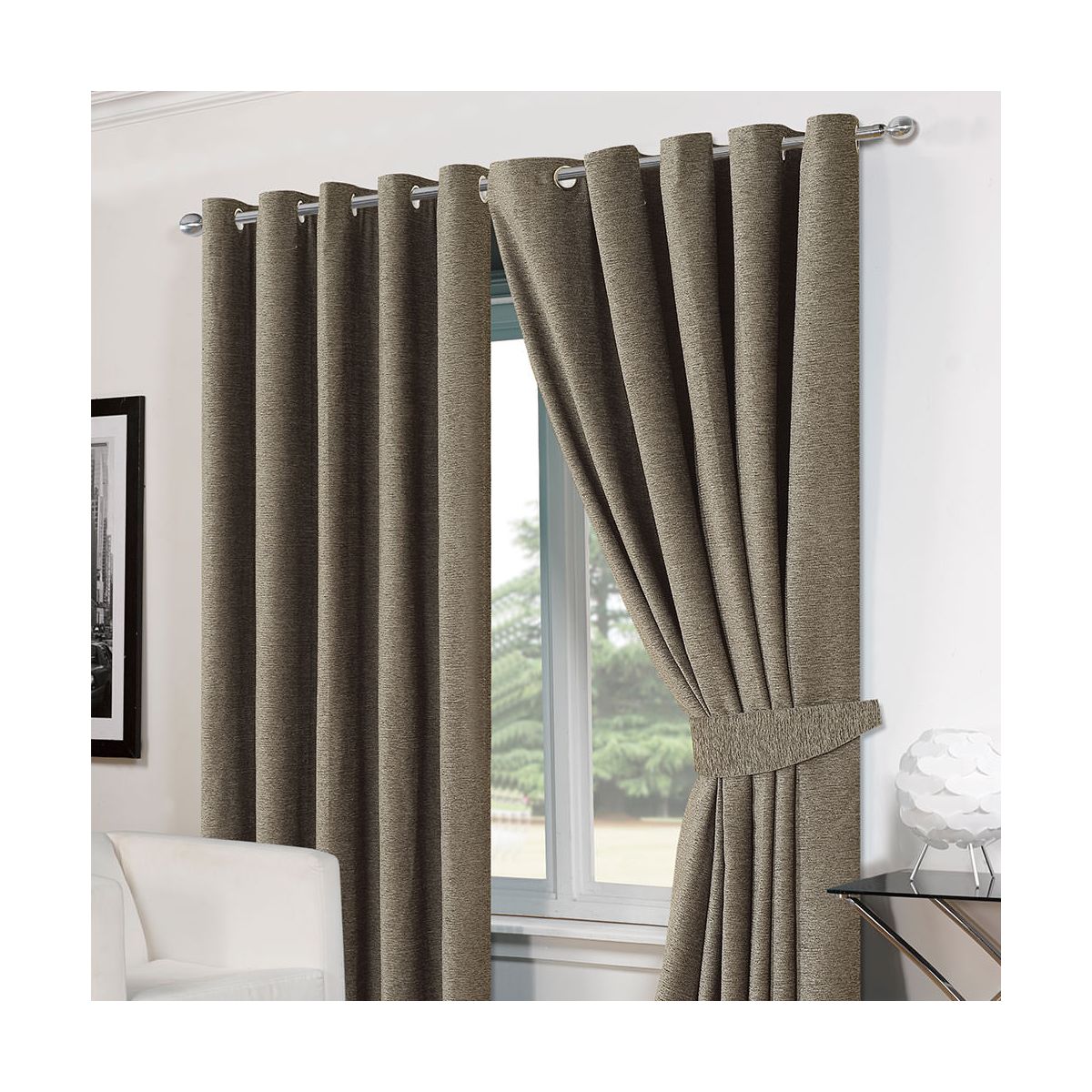Energy efficient for maximum insulation, keeps heat in / keeps light out. These heavy weight woven chenille curtains will transform your room with its efficient colouring and unique super soft material. The eyelet curtains are lined and come with free tie backs. Easy to hang and easy care.