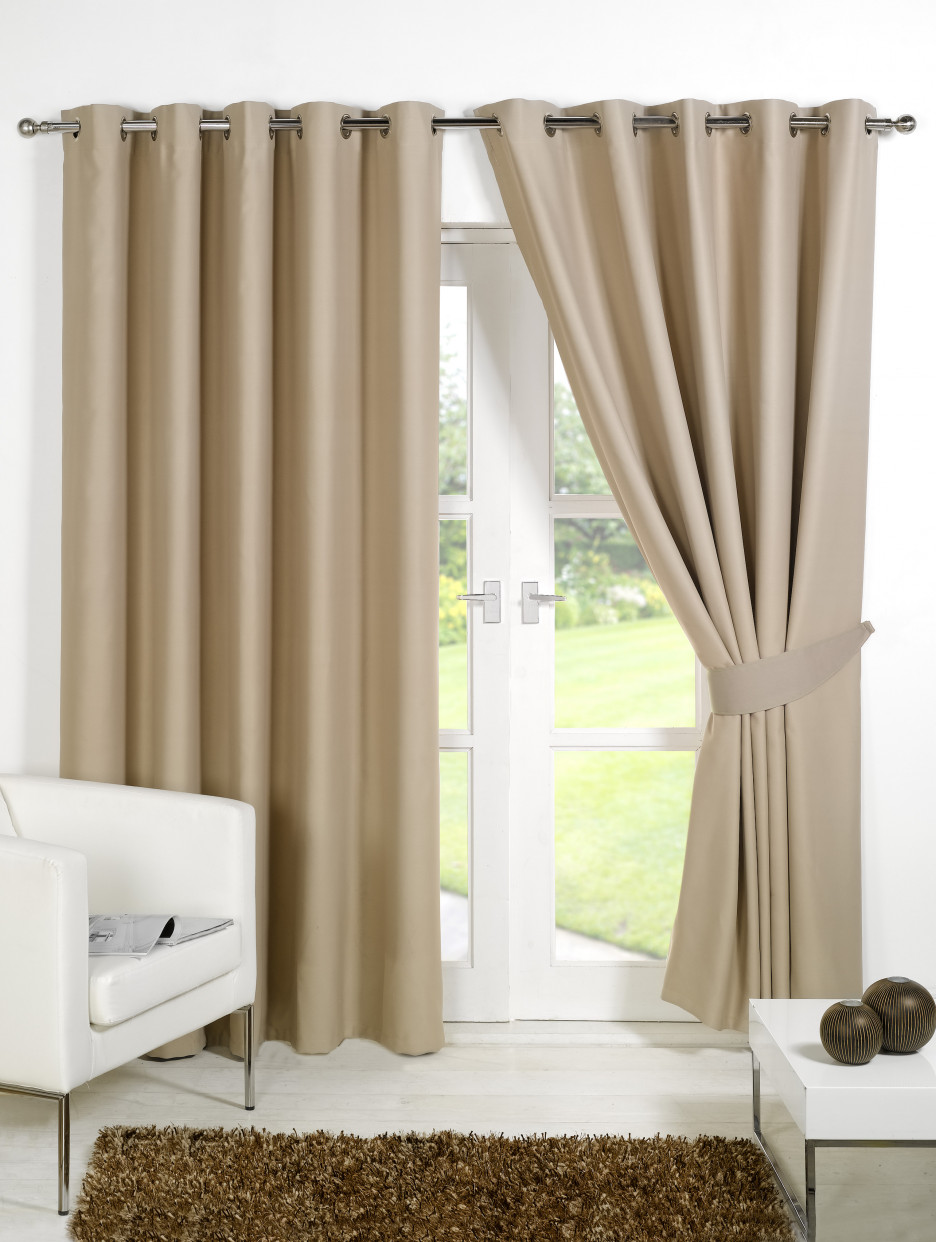 Eyelet Blackouts Include: A Pair of Curtains and a free pair of matching Tiebacks - so 4 pieces in total. Please note the door curtain is only one curtain and no tieback is included.