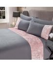 OHS Crushed Velvet Band Duvet Set - Silver/Blush Pink