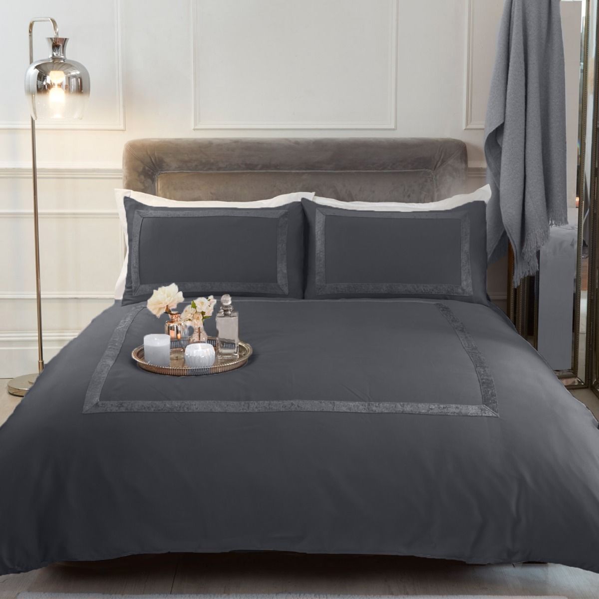 OHS Crushed Velvet Border Duvet Set - Silver Grey