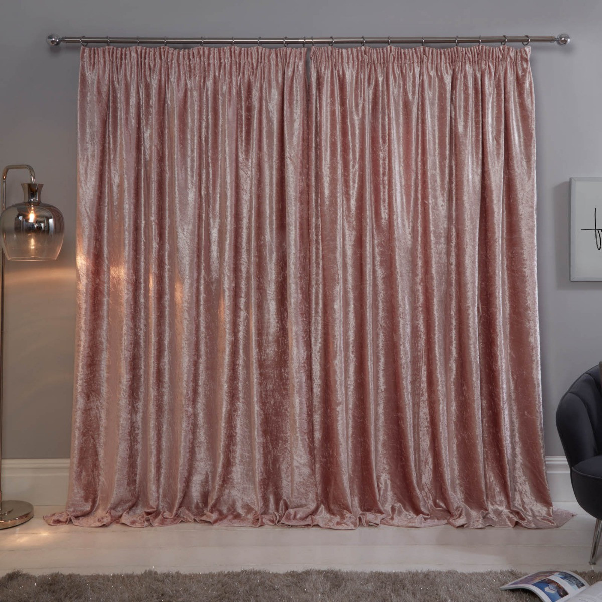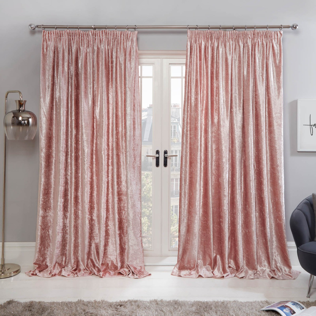 OHS Crushed Velvet Pencil Pleat Curtains, Blush - 46 x 54
