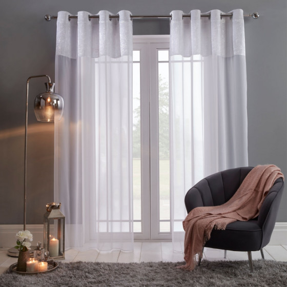 Transform and modernise your room with these crushed velvet voile eyelet top curtains from the OHS Home Collection. These lightweight net curtains transform your room with its modern qualities and its unique material. These decorative velvet curtains have a basic design and are great for privacy, making them perfect for any room.