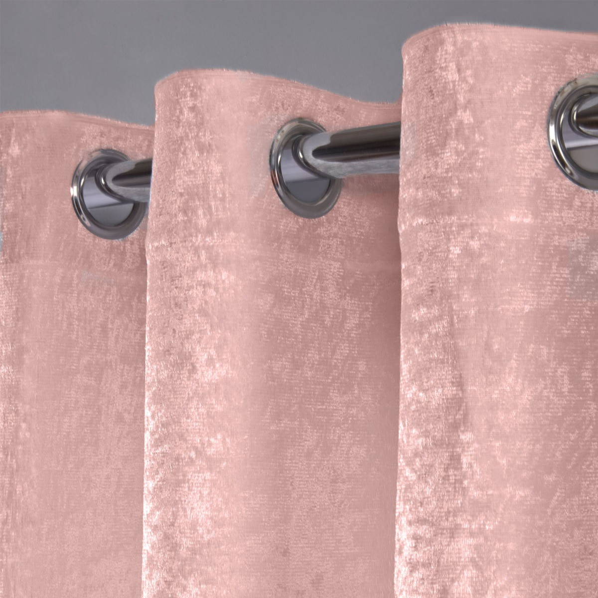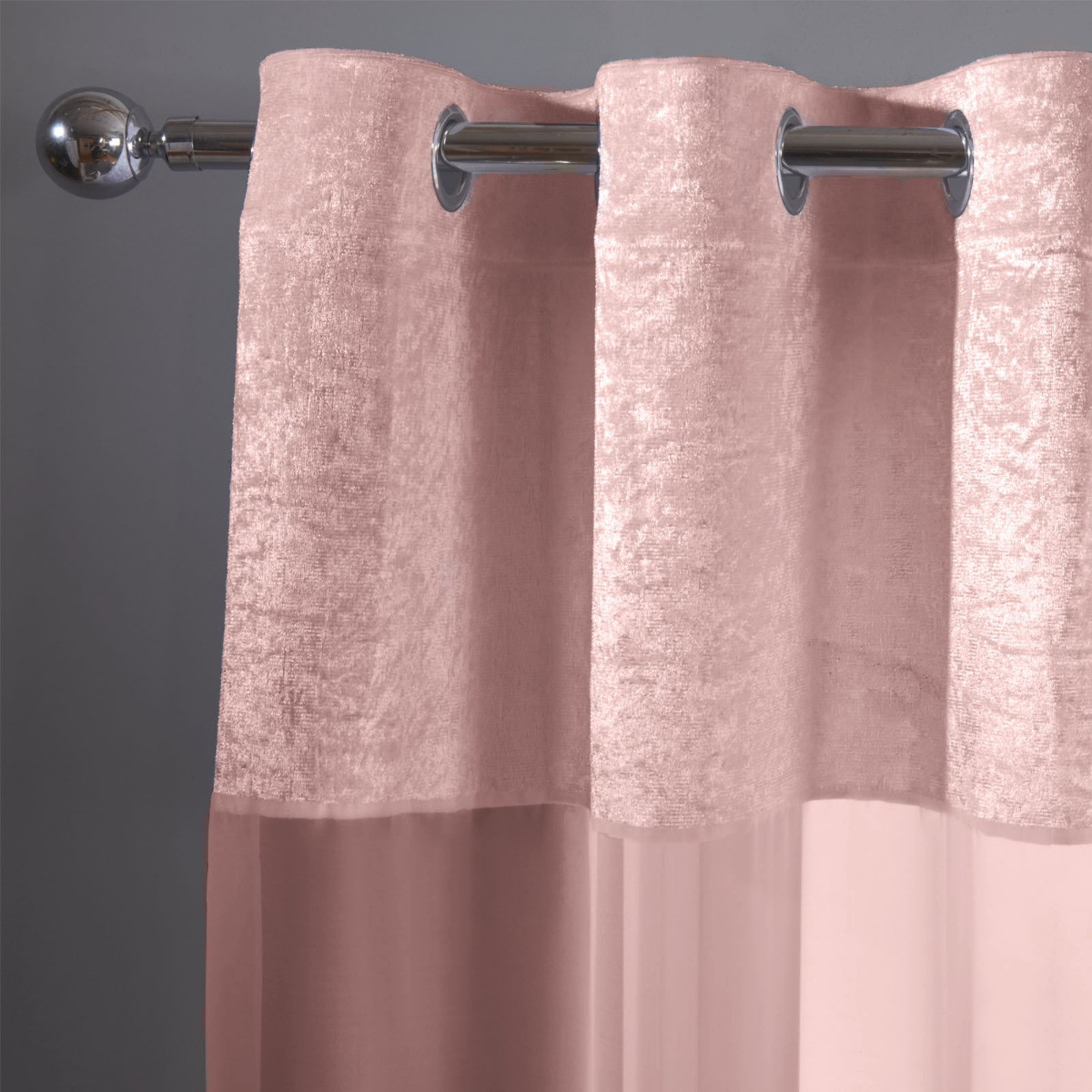 OHS Crushed Velvet Voile Net Eyelet Curtains, Blush Pink - 55" x 87"