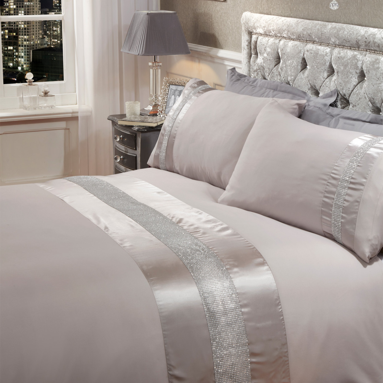 OHS Diamante Sparkle Duvet Set - Light Grey