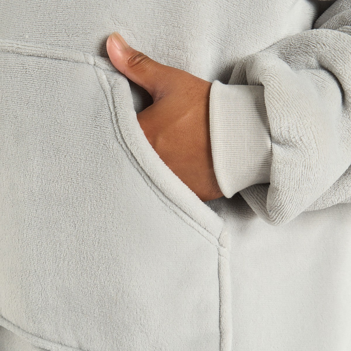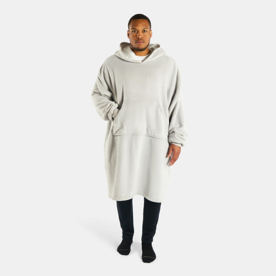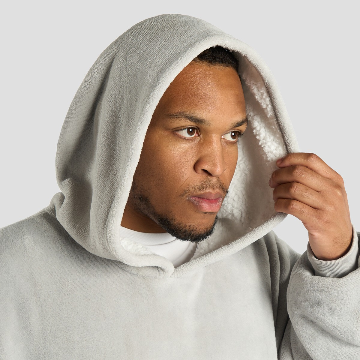 OHS Extra-Long Sherpa Hoodie Blanket - Silver