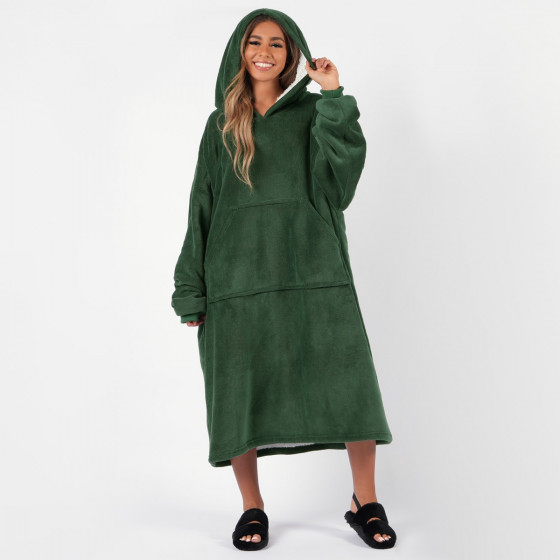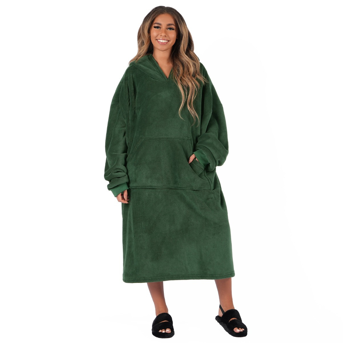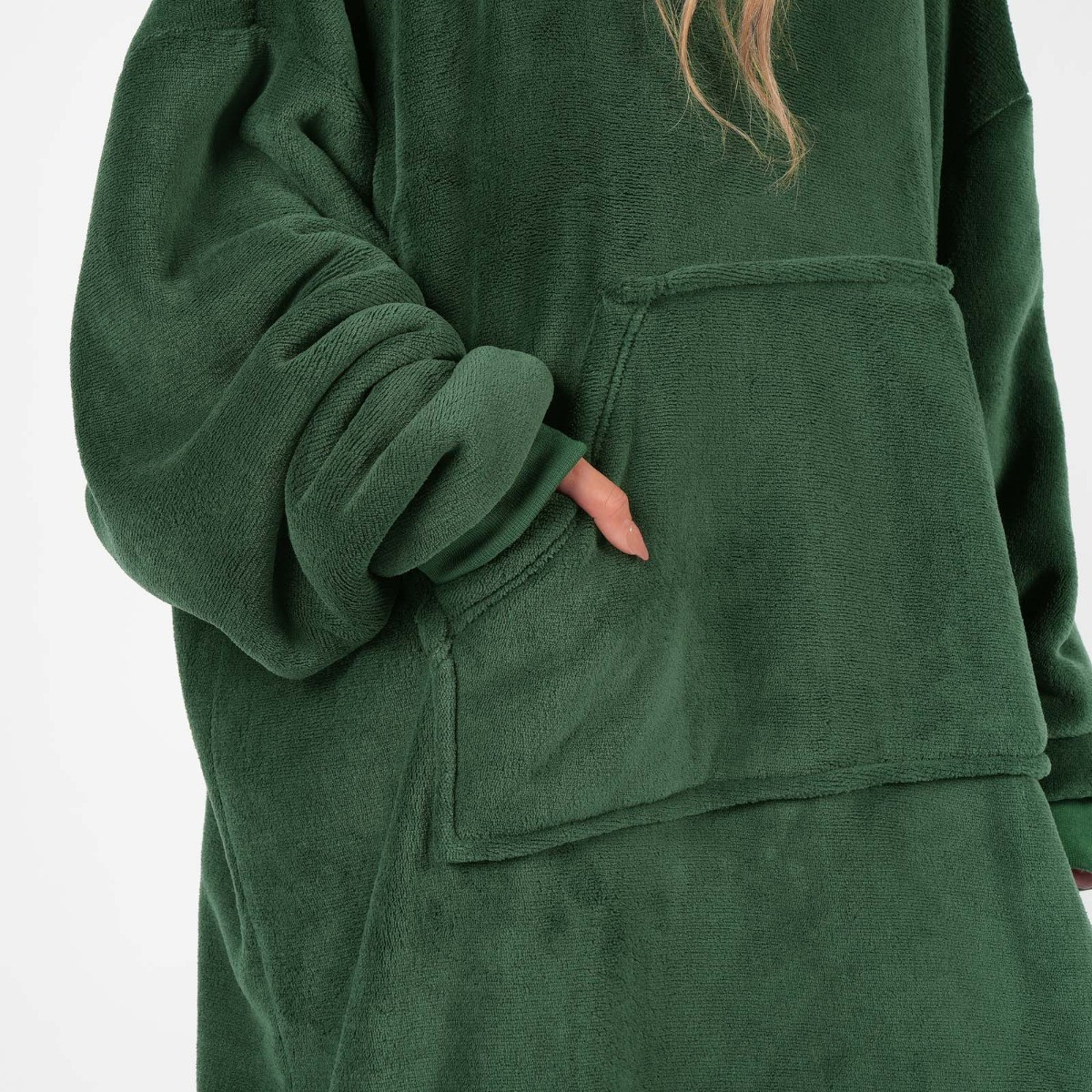 OHS Extra-Long Sherpa Hoodie Blanket - Forest Green